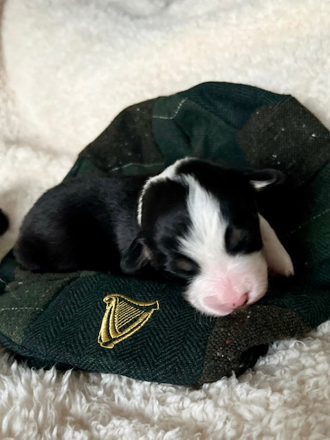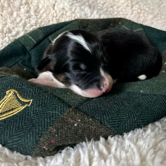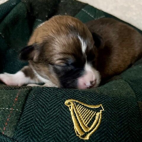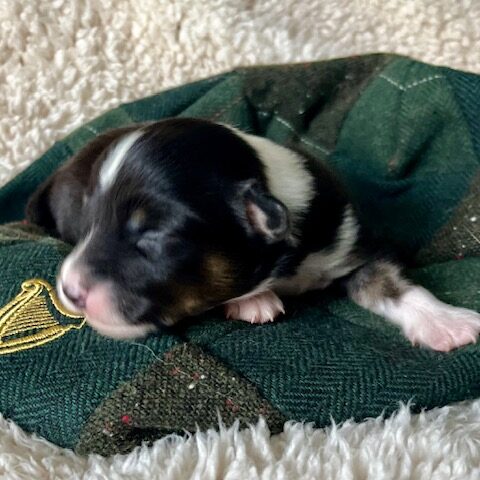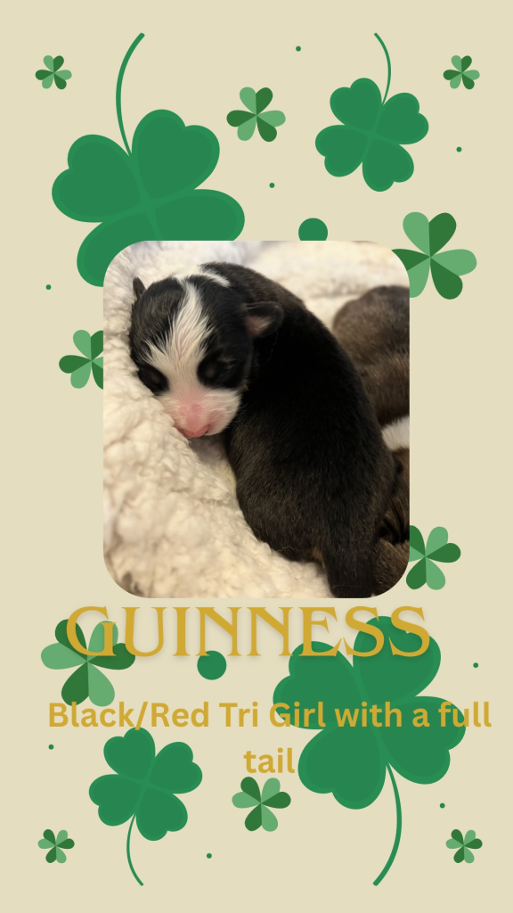 Guinness – Black Tri Fluffy Female with a full tail