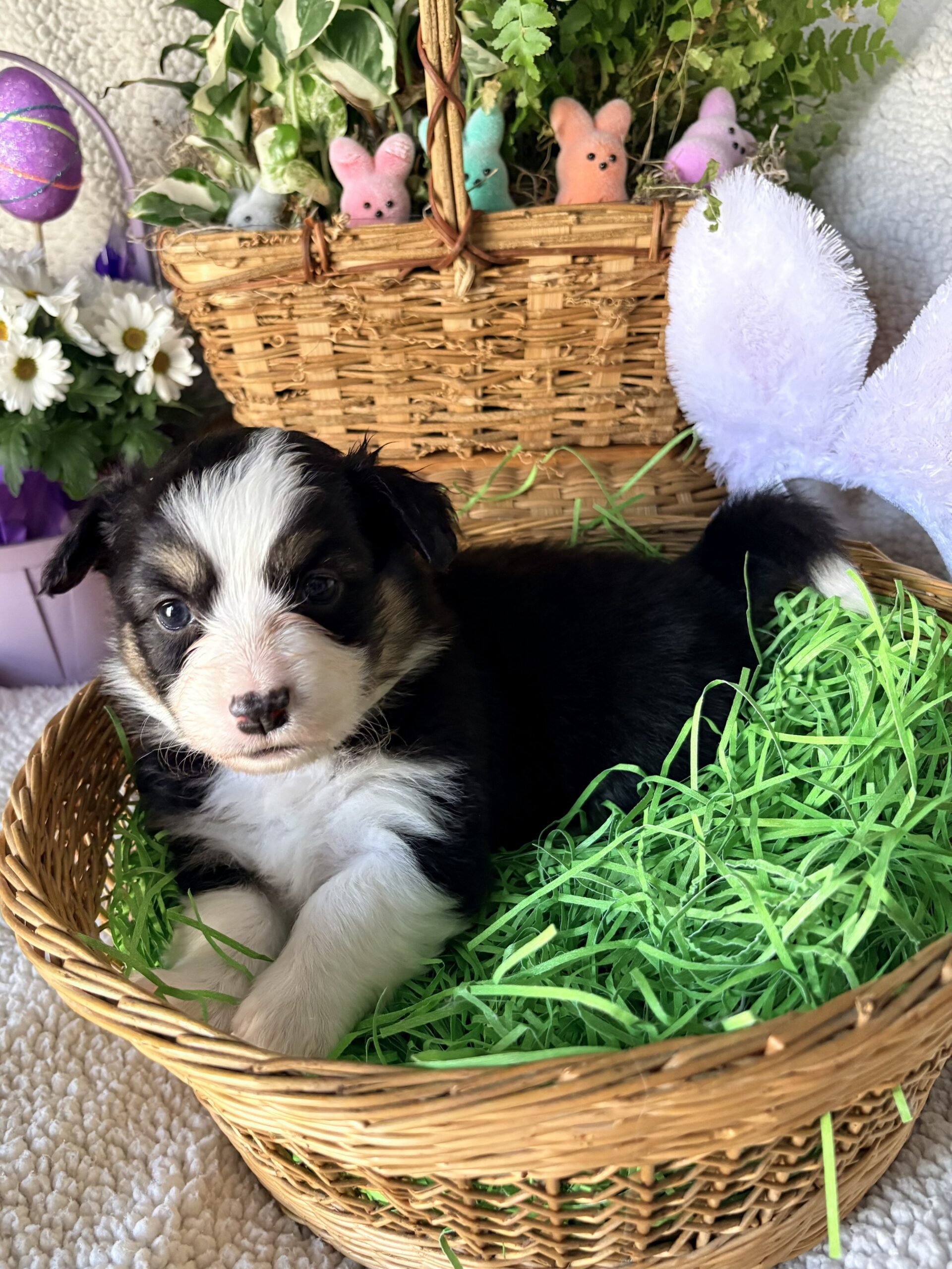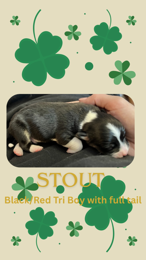 Stout – Black Tri Fluffy Male with a full tail