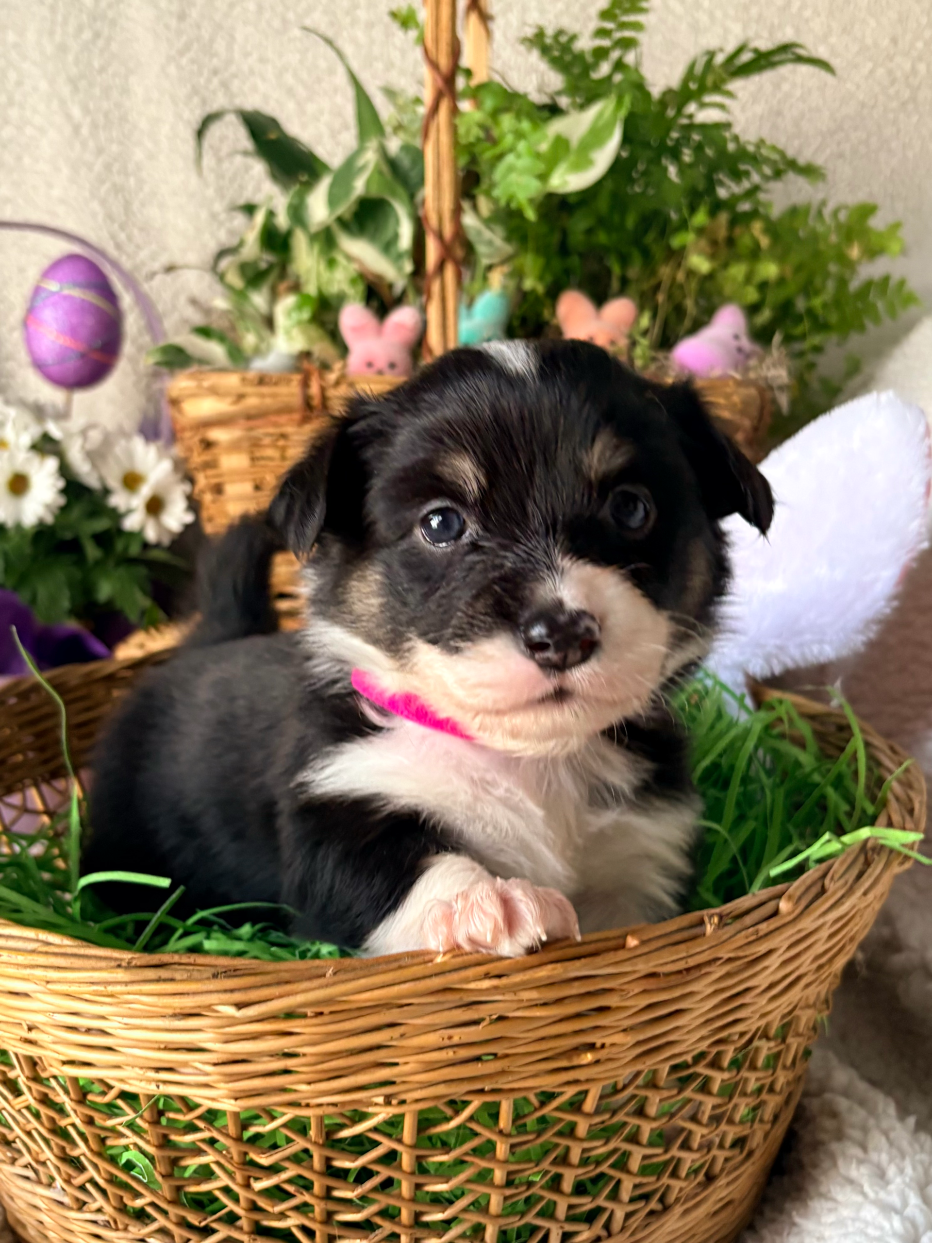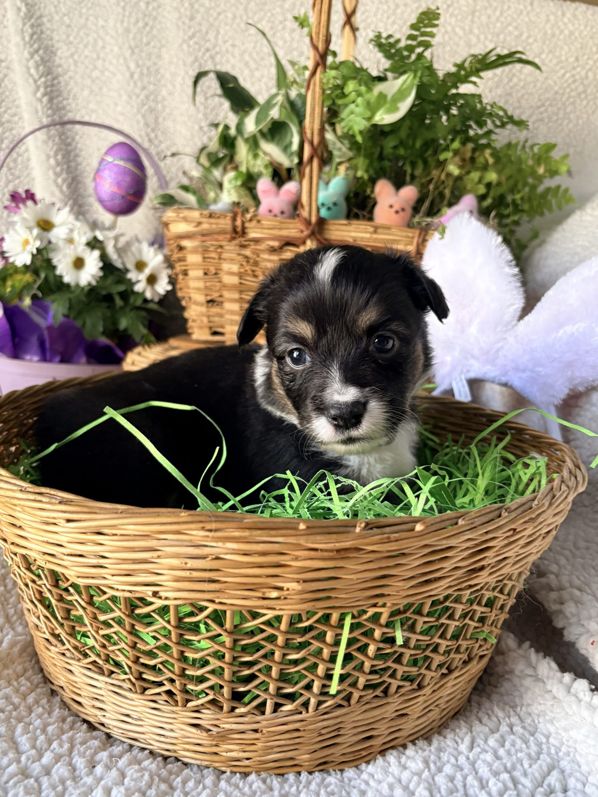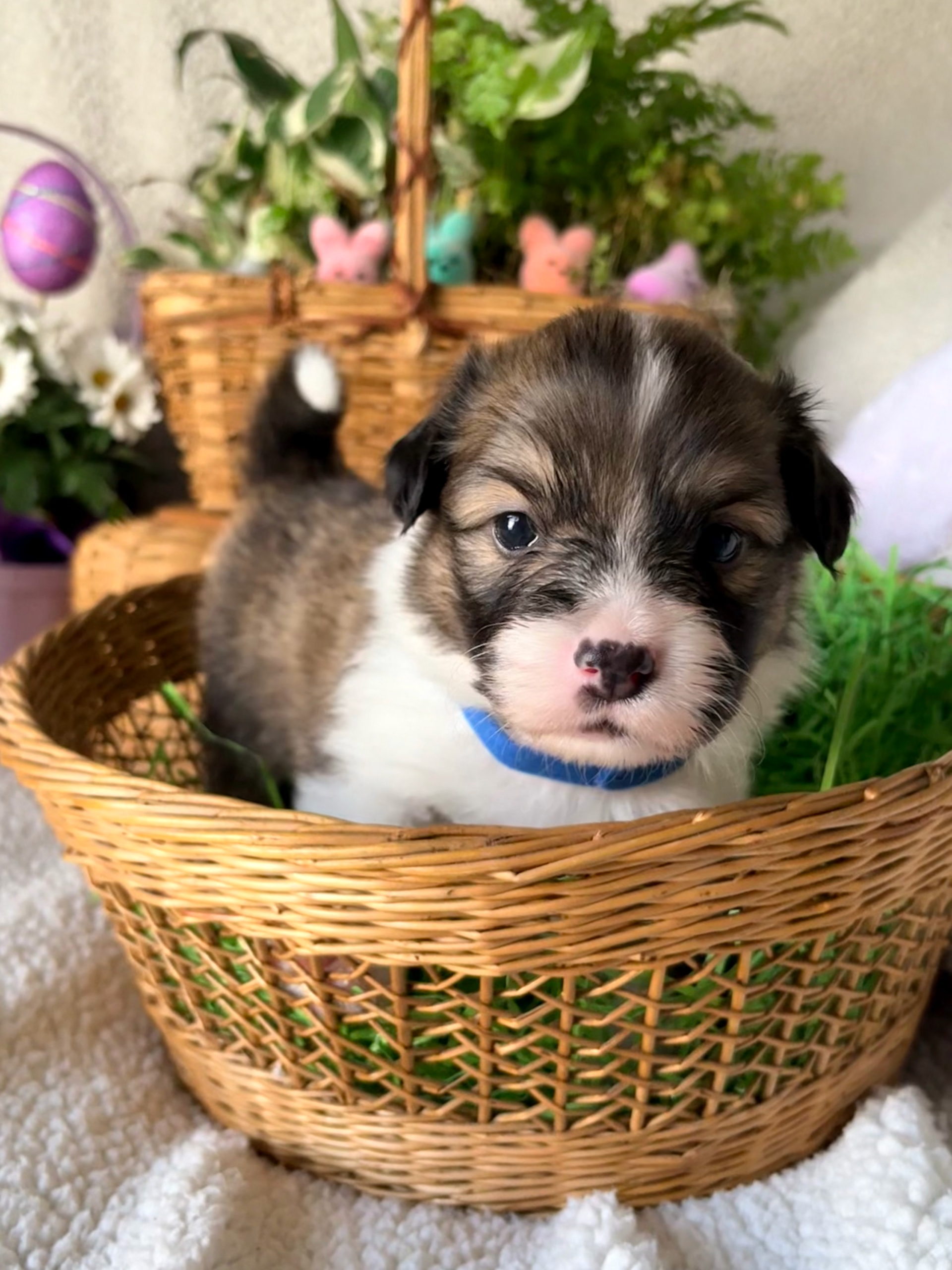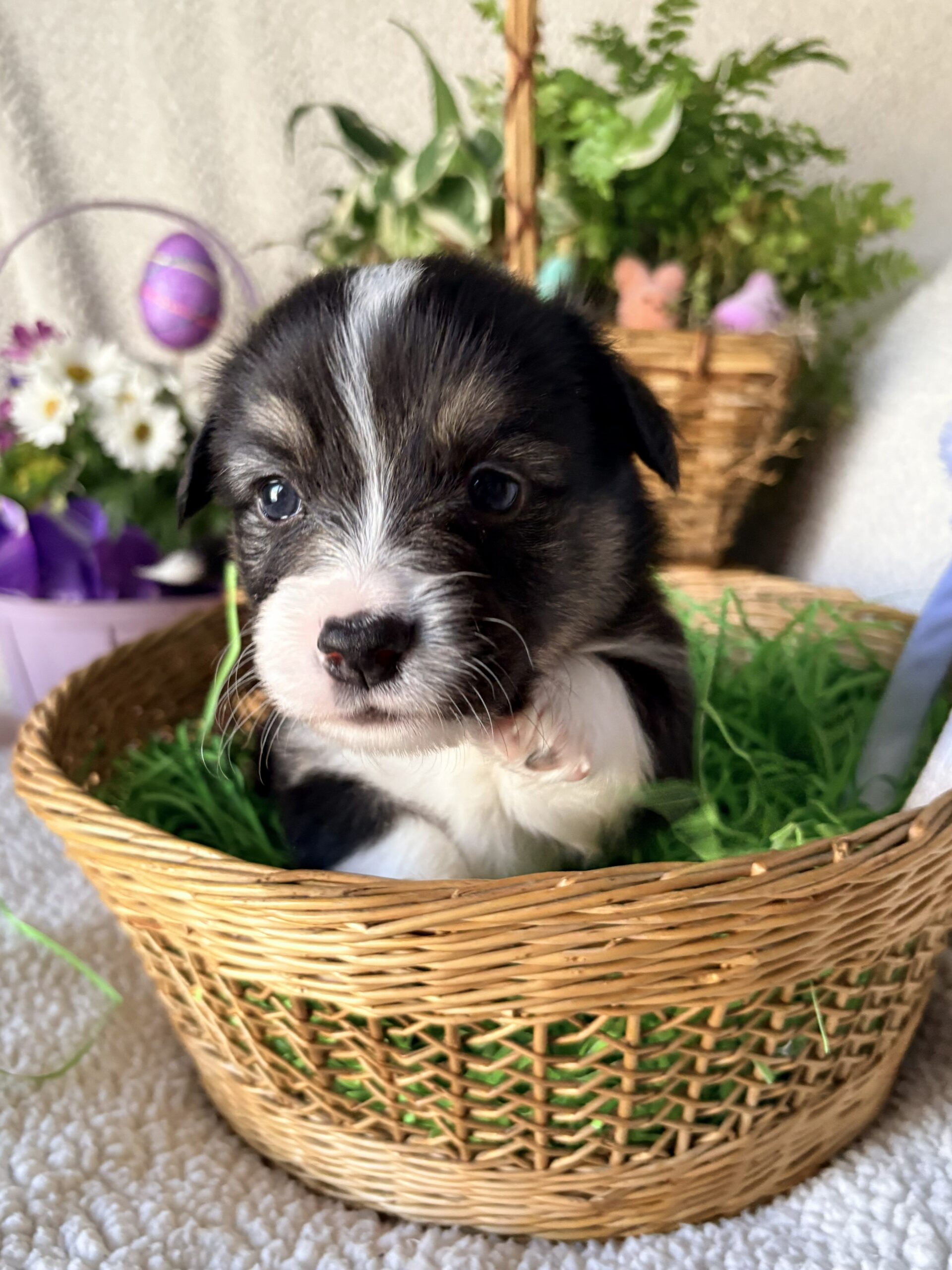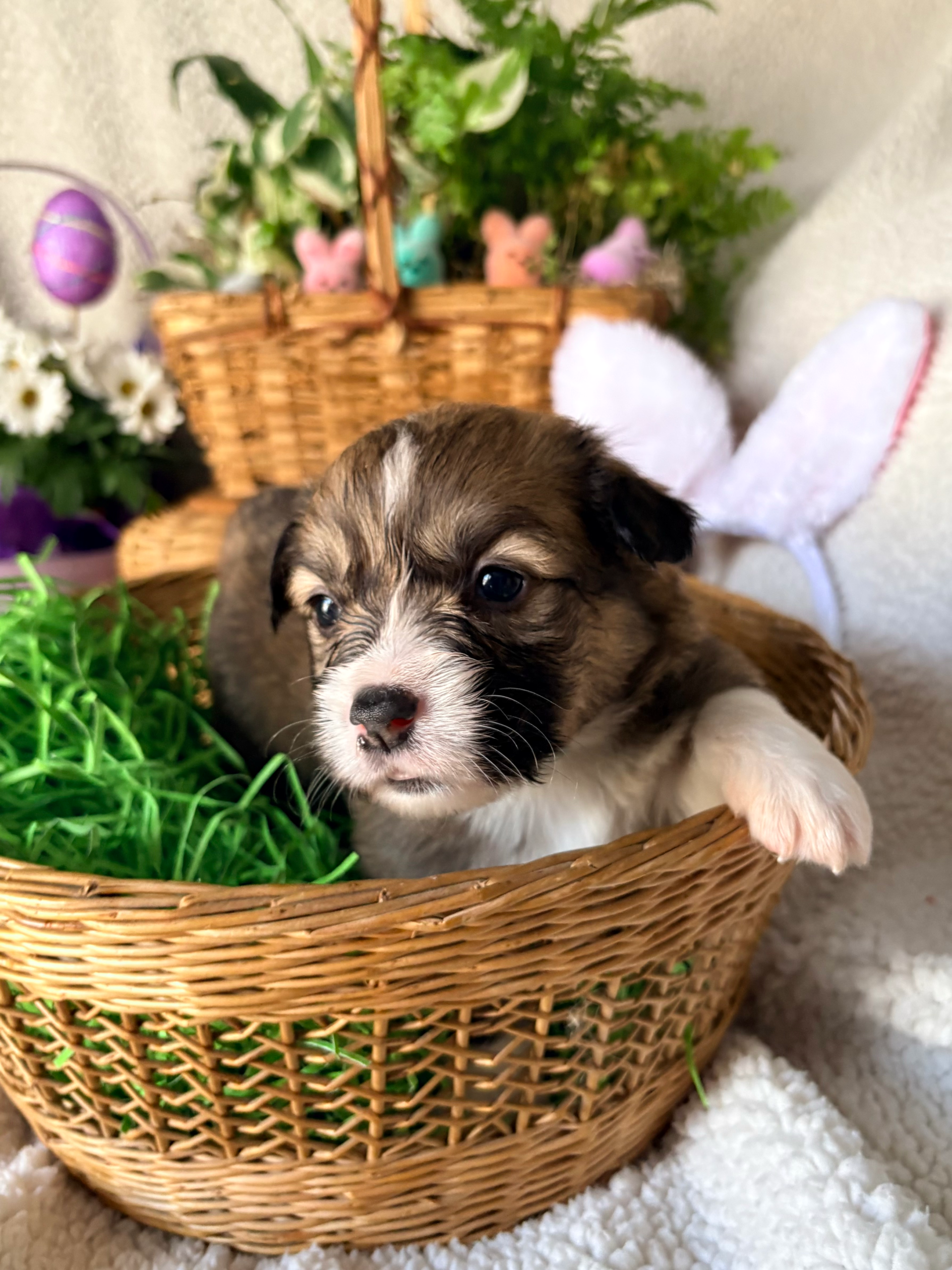 Spud is a 3 year old AKC Pembroke Welsh Corgi. He is DM, VWD & EIC clear and sired multiple litters before coming to Potato Patch in December 2025. Not only is he very handsome, but also laid back, super cuddly and makes us smile every day.